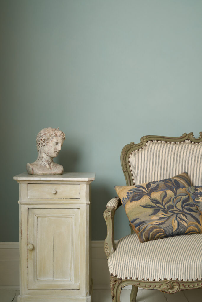 Pemberley Blue Wall Paint ist ideal für diesen Look. Benannt nach Mr. Darcys Anwesen aus Stolz und Vorurteil, erinnert dieser Ton an den Einsatz von Blau in herrschaftlichen Häusern jener Zeit. Er ähnelt einer Mischung aus Duck Egg Blue und Old White.