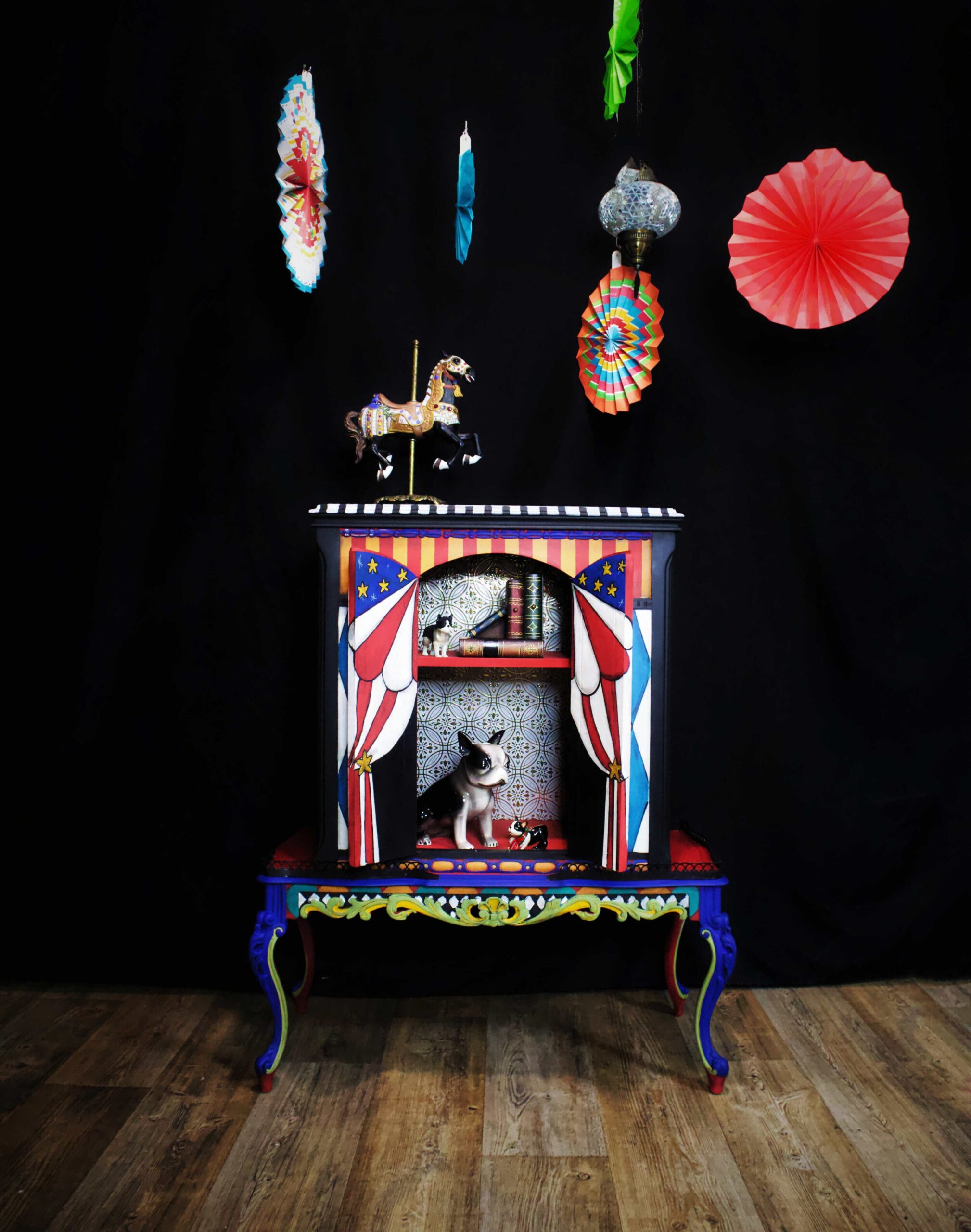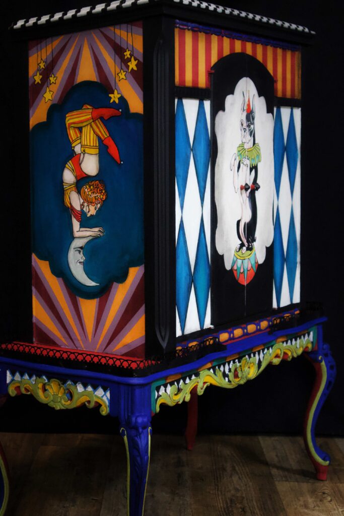 Ihre Arbeiten werden diejenigen inspirieren und begeistern, die bemalte moderne Möbel aus der Mitte des Jahrhunderts, fröhlichen künstlerischen Ausdruck und die Magie kühner Designs lieben.