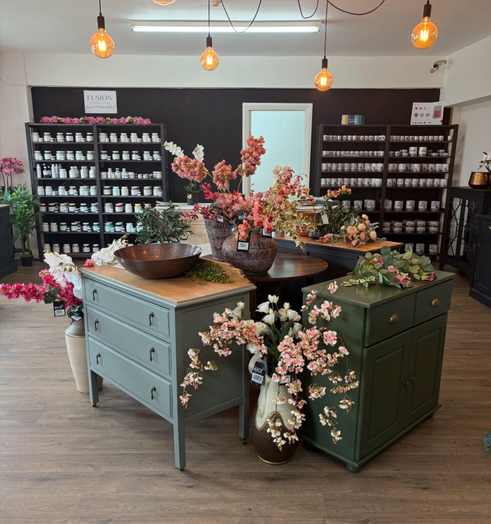 A gem of a store selling Annie Sloan Chalk Paint, brushes and waxes, painted and vintage furniture, home decor and beautiful faux plants and flowers.