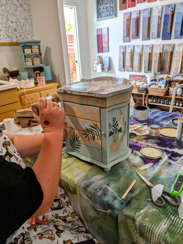 This workshop is jam packed with all kinds of DIY goodies! You’ll choose your favorite Annie Sloan Paint color and you’ll receive a small sample pot of paint to complete in advance. Bring the freshly painted box to the workshop, where we’ll apply finishing paint coats and decorative embellishments. Once the boxes are dry, you’ll receive a choice of Re-design by Prima design transfers to add to your jewelry boxes for those unique, artistic embellishments. Finally, we’ll finish each box with a buttery soft wax top coat. Jewelry boxes are available for purchase if you are unable to find one of your own or don’t currently own one.