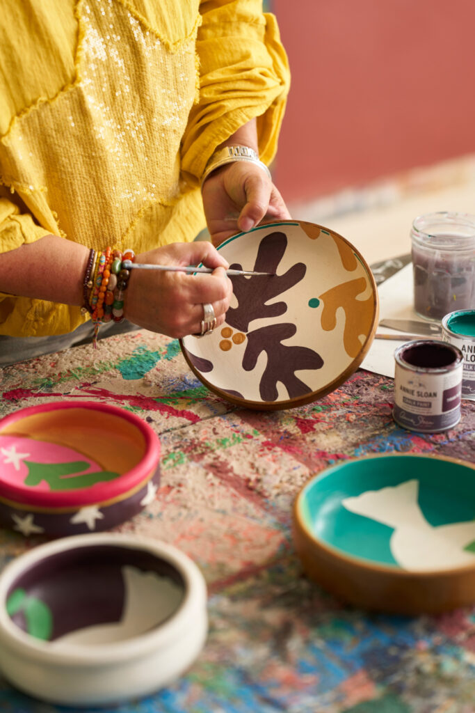 Make sure your wooden bowls are clean and dry. Paint your bowl in two base coats of your chosen Chalk Paint™ colour. Once dry use our templates and colour palette to inspire your decorative pattern painting. Seal your design with Chalk Paint Matt Lacquer.