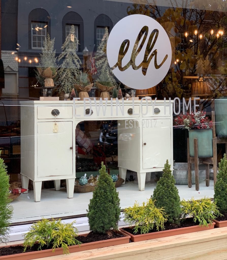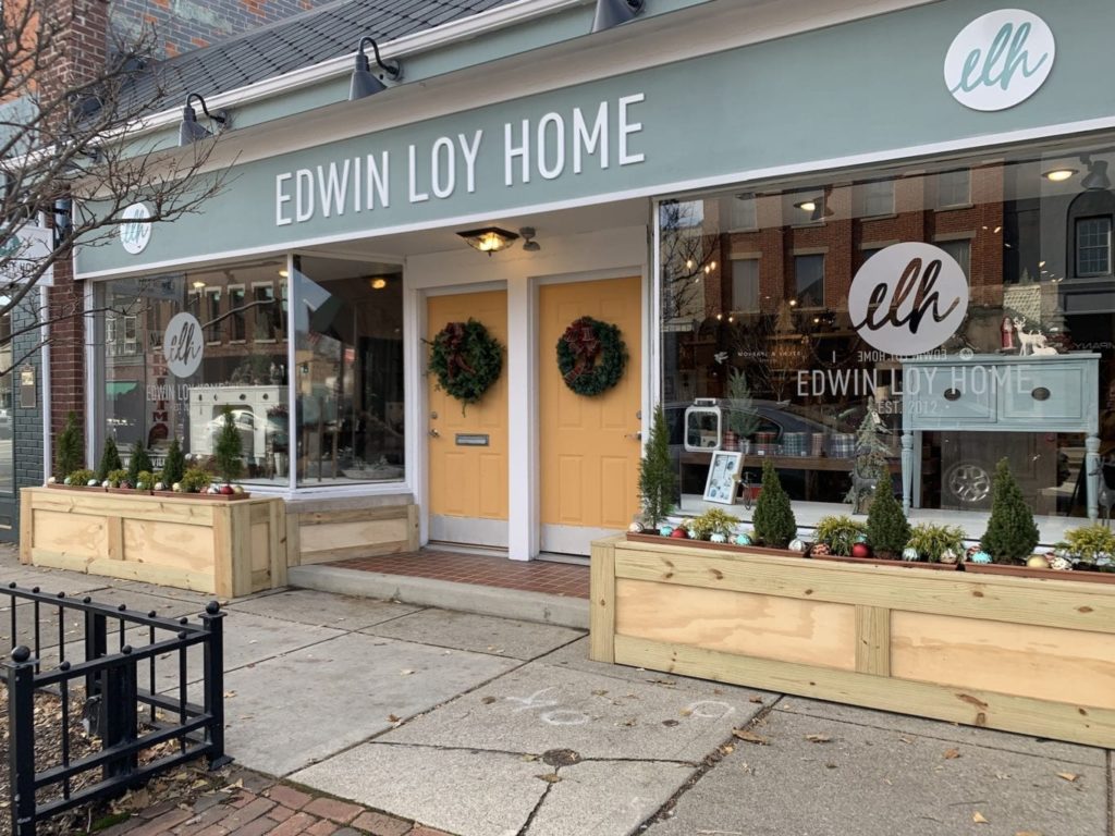 Edwin Loy Home is a curated lifestyle shop located in historic Uptown Westerville. We offer home decor + gifts, candles, accessories, found vintage/antique finds and artisan hand-painted furniture in Chalk Paint® by Annie Sloan. Edwin Loy Home offers Chalk Paint® Workshops and free Chalk Paint® demonstrations and consultations. We offer a variety of sample boards as well painted furniture in our shops. The interior floors are painted and stenciled using Chalk Paint® Old White, Graphite, Chateau Grey & Arles and Gloss Lacquer. Our front doors are hand painted in Chalk Paint® Arles and parts of the exterior are Duck Egg Blue.