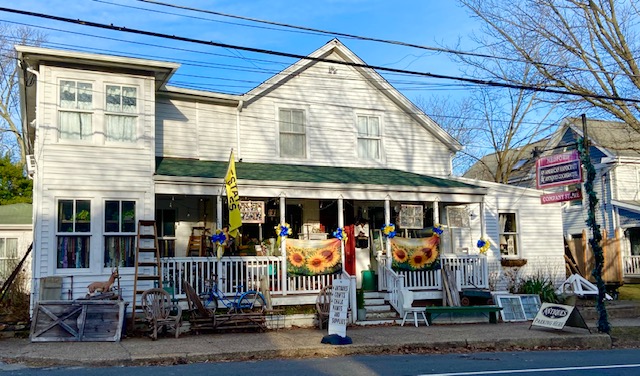 You will discover an ever-changing selection of up-cycled painted furniture, handcraft, gifts & antiques, vintage clothing, costume jewelry. We provide chalk paint, finishes & supplies, decoupage tissue, transfers and stencils for DIY. We offer workshops in chalk painting, mosaics and stained glass, fundraising and music events. Our town has several parades and festivals that bring lively celebration to Main Street, and we are always open and hopping during these events. People who stop in enjoy visiting our interesting garden and petting our friendly goats. We have a very inviting atmosphere, and our visitors enjoy learning the history of our building.