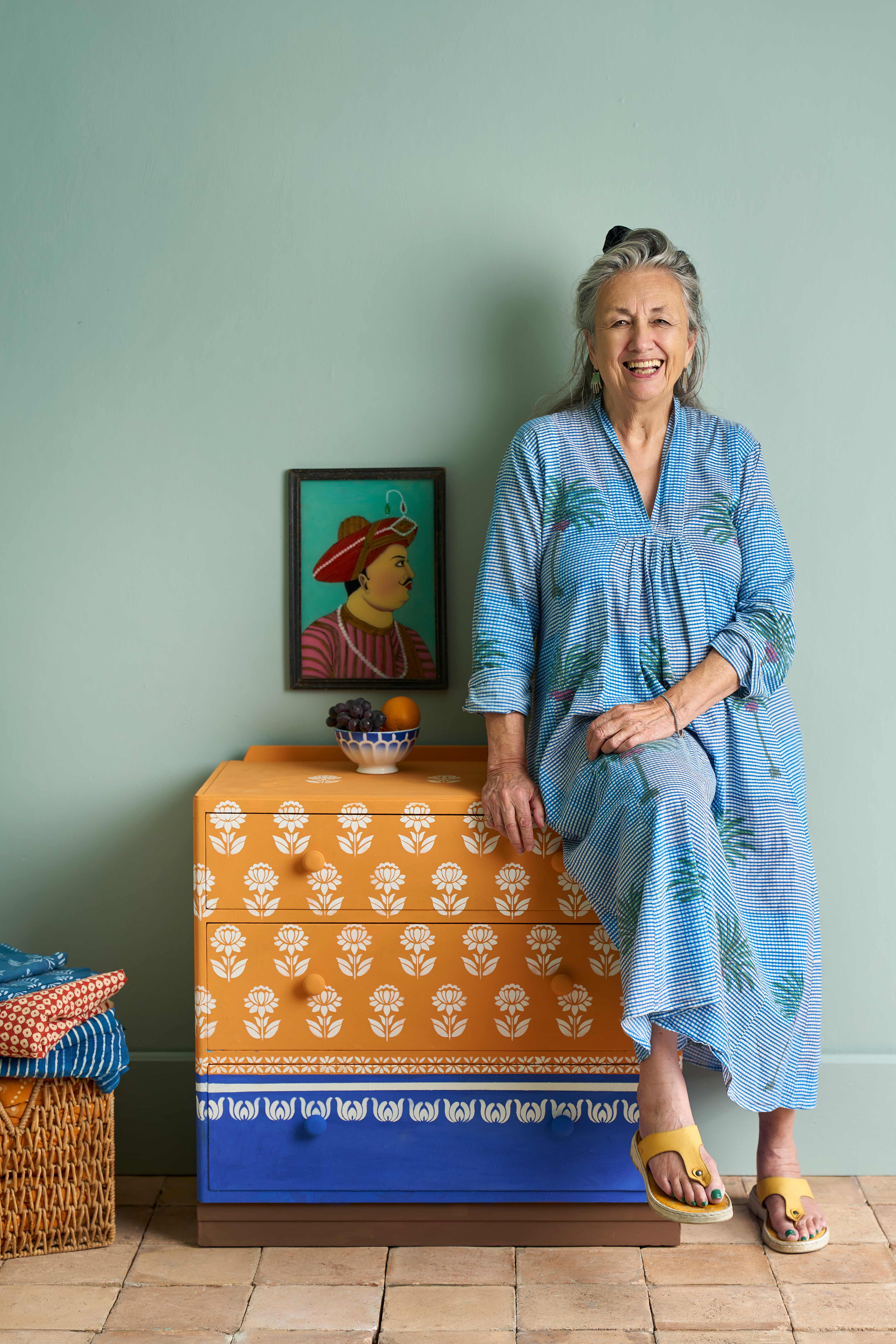 These stencil designs were inspired by Annie’s visits to Rajasthan in India, where we run our painting retreats. A visit to the Lotus Room in Udaipur’s City Palace, which is covered from floor to ceiling with colourful hand painted designs, was the inspiration behind this collection. As soon as Annie saw the graphic flowers and intricate borders, she knew they would make wonderful stencils.