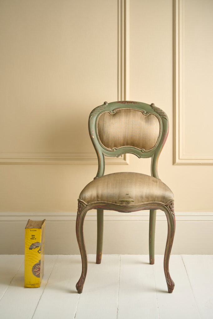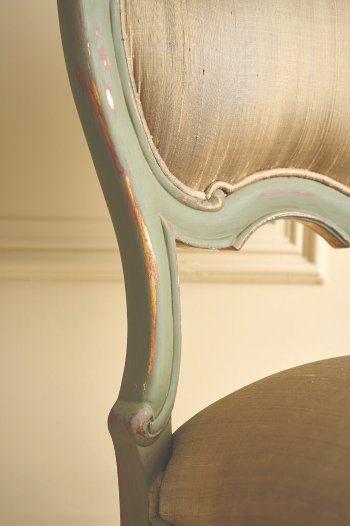 As this chair was already painted gold, its metallic finish showed through in some places when sanded back. To recreate this look, use Metallic Paint in Traditional Gold to areas you’ve sanded or on mouldings after the final coat of Clear Chalk Paint Wax.