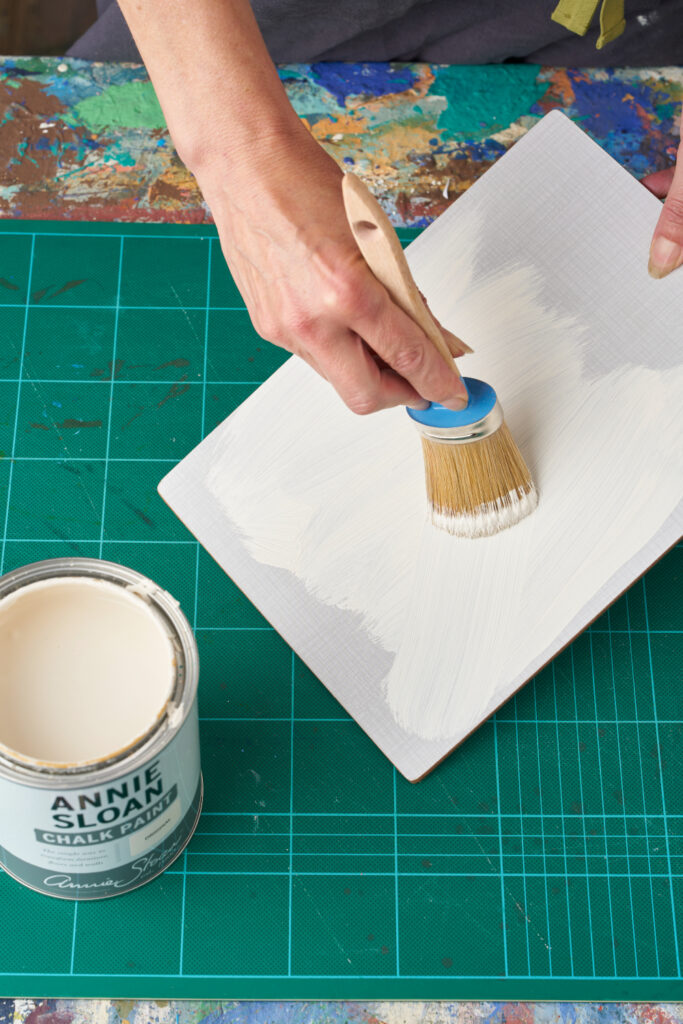 Lightly sand the placements to key the surface before painting them in two base coats of Chalk Paint in Original, allowing each coat to dry fully.