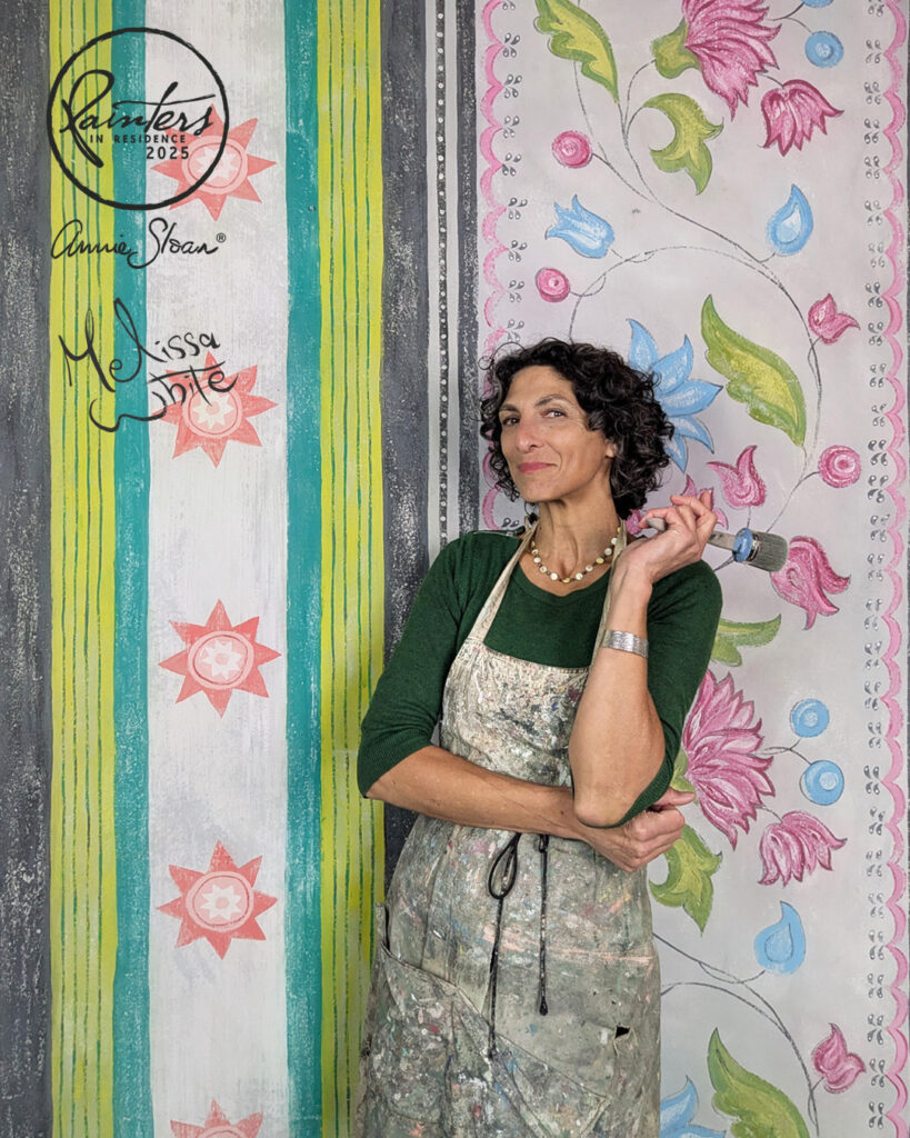 Melissa’s signature style is a wonderful mix of historic, artisanal and painterly and she often gives her work an aged, distressed look to give it the patina of time.