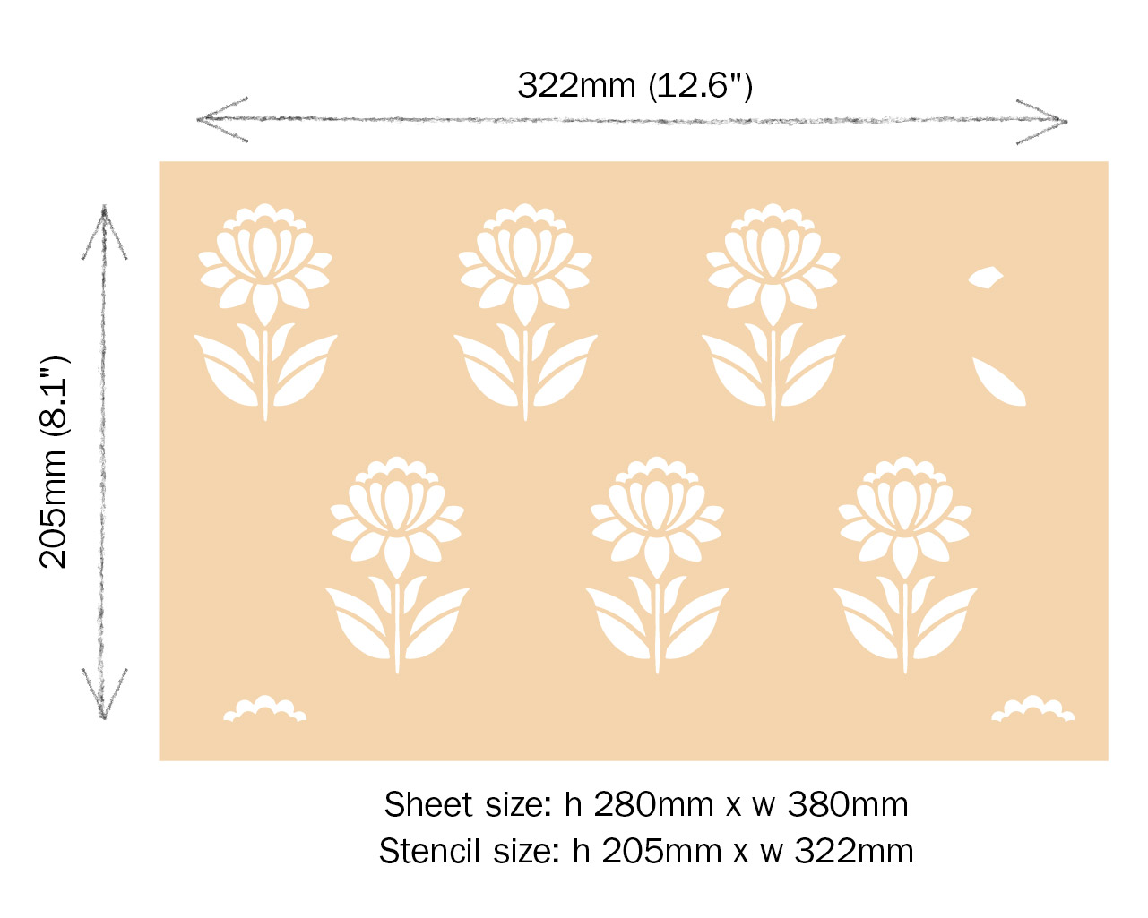 As part of The Rajasthan Stencil Collection, this flower design is named Mewar, after the ancient kingdom which is now Rajasthan.